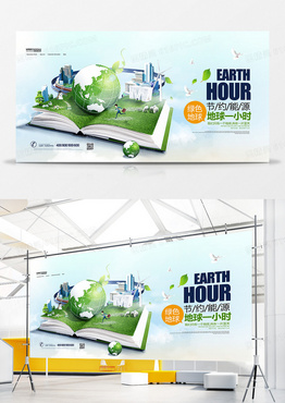 创意合成地球一小时节约能源公益展板设计