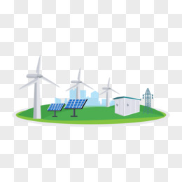 插画风能太阳能发电免抠元素