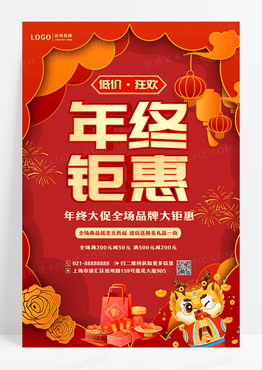 红色喜庆年终钜惠活动促销海报新年年终促销