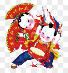 手绘可爱虎年放鞭炮的虎娃装饰元素