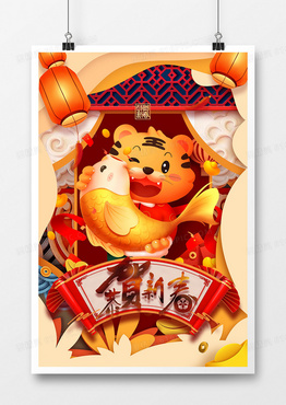 剪纸风2021虎年吉祥物年画插画海报设计