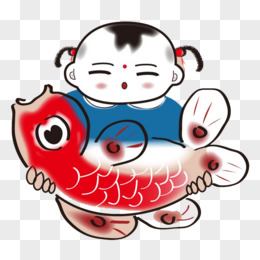 剪纸红色鲤鱼娃娃