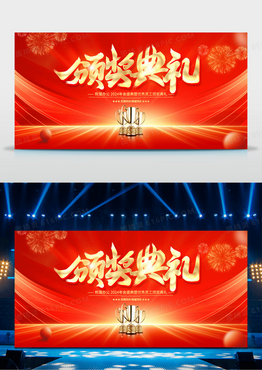 红色大气2024龙年企业颁奖典礼舞台背景展板年会颁奖典礼