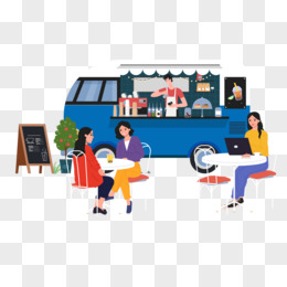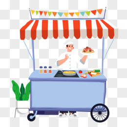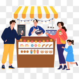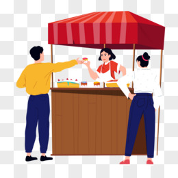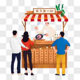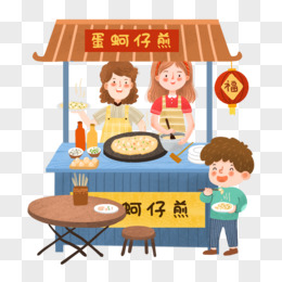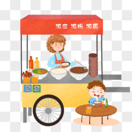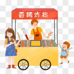 手绘卡通妈妈和孩子在路边买麻辣烫免抠元素