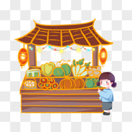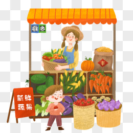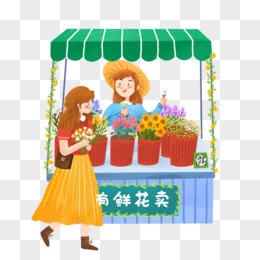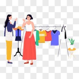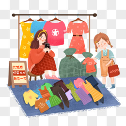 手绘卡通妈妈带女孩去夜市买衣服素材