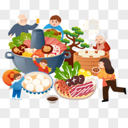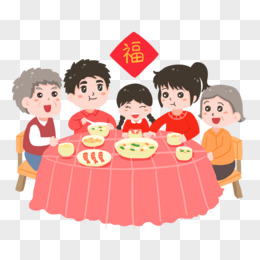 手绘卡通一家人团圆吃年夜饭免抠元素