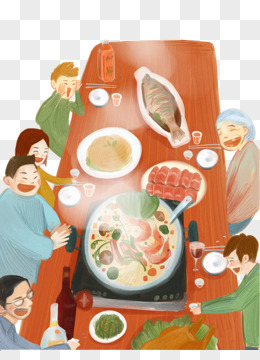 手绘卡通团圆饭年夜饭藕片免抠元素