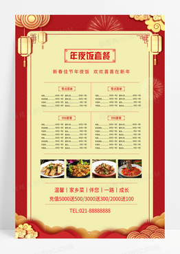 2023年插画年夜饭套餐春节菜单宣传海报