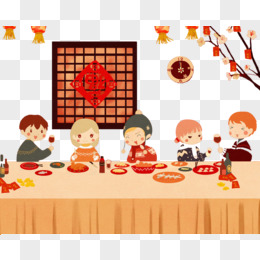 手绘卡通一家人团圆吃年夜饭免抠元素