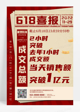 红色创意复古风618喜报年中开门红海报