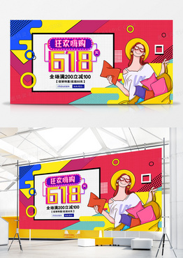 波普风618年终大促电商促销展板