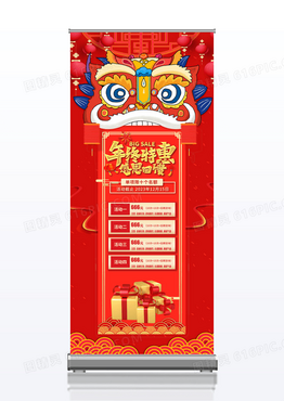 红色插画年终感恩大回馈活动宣传展架年终回馈