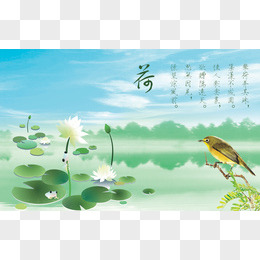 中国风海报背景版式花瓣山水鸟书籍毛笔