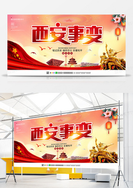 红色大气简约西安事变展板设计