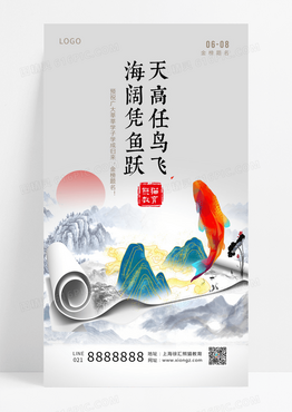中国风国潮蓝色山水仙鹤祥云免扣元素