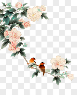 中国风海报背景版式花瓣山水鸟书籍毛笔