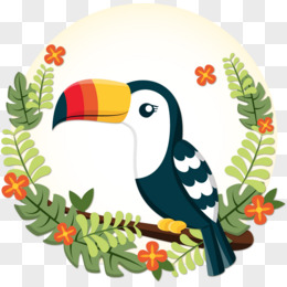 水彩矢量大嘴鸟花草
