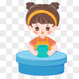 手绘小姐姐捏陶泥免抠素材
