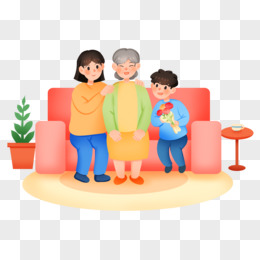 手绘女儿搂着妈妈温馨画面合成场景元素