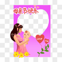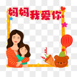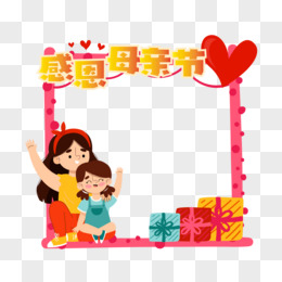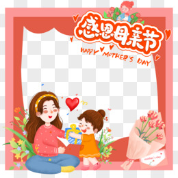 卡通矢量母亲节孩子给妈妈献花边框素材