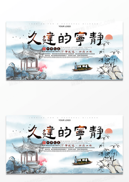 创意山水寻找久违的宁静展板国风久违的宁静展板图片