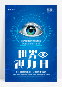 蓝色背景特写眼睛保护视力国际世界视力日海报
