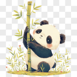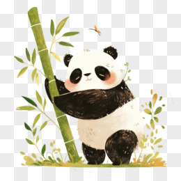 春天拟人动物熊猫采摘竹子免抠元素