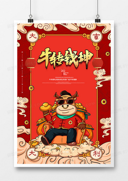 大气国潮牛转乾坤2021牛年大吉牛作创意海报