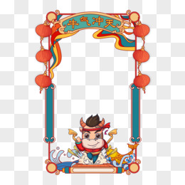 国潮新年牛年牛气冲天创意牛牛边框元素
