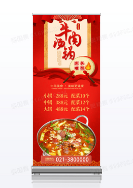 红色牛肉汤锅美食牛肉汤展架易拉宝