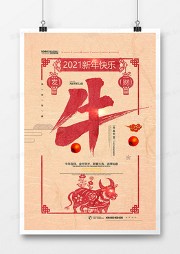 复古中国风剪纸2021牛年海报设计