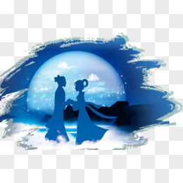 七夕情侣剪影背景免抠元素