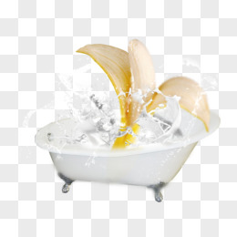 手绘卡通一个木碗里放着香蕉水果捞免抠元素