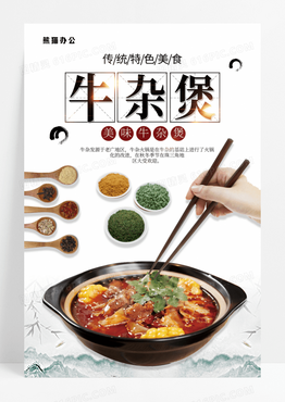 简约白色牛杂煲海报