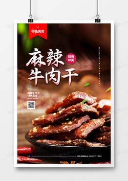 摄影简约麻辣牛肉干美食宣传海报设计