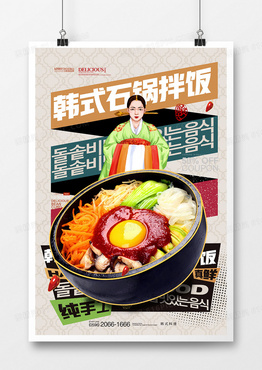创意国潮手绘韩式美食石锅拌饭海报设计
