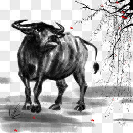 卡通手绘新年牛扭秧歌庆祝免抠元素