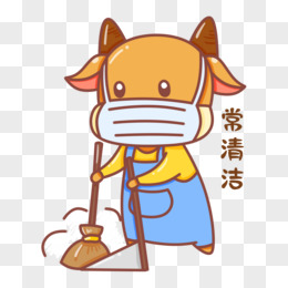 手绘卡通防疫小牛喷洒消杀病毒素材