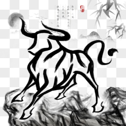 卡通手绘新年牛牛舞狮玩耍免抠元素