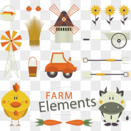 手绘农场农具拖拉机免抠素材