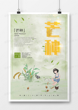 手绘水墨风古人辛勤劳作在田地里锄地元素