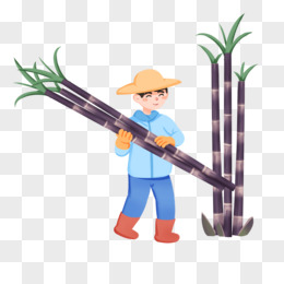 手绘卡通收甘蔗的农民免抠素材