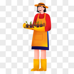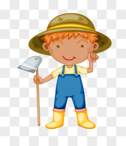 手绘插画风农民在田地里锄地辛勤劳动元素