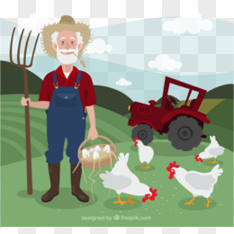 插画戴草帽的农民在田野旁操控无人机免抠元素