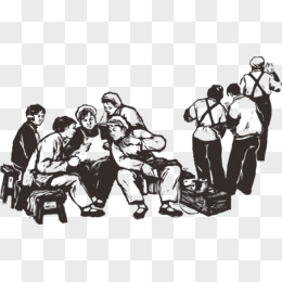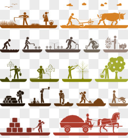 手绘水墨风古人辛勤劳作在田地里锄地元素