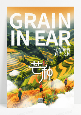 手绘中国画水墨风戴帽子的古人种田锄地元素