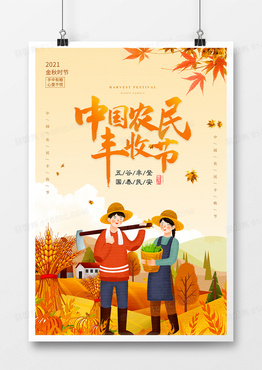 手绘卡通农民秋收食物大丰收喜悦场景素材