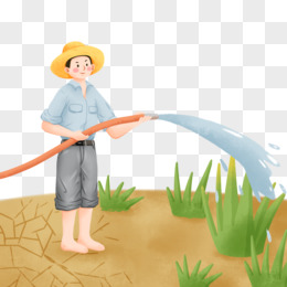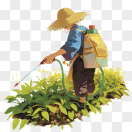 卡通手绘农民娃娃在田里种秧苗插画元素