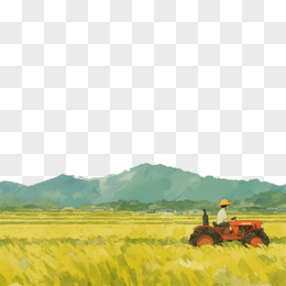 卡通风农业农民开着拖拉机从农田里经过免抠元素