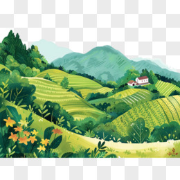 手绘国潮梯田麦穗农田梯田山川微景观免抠元素